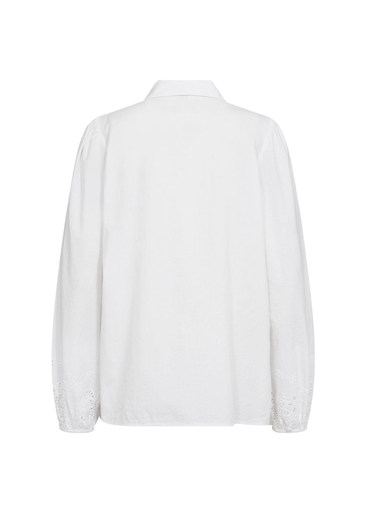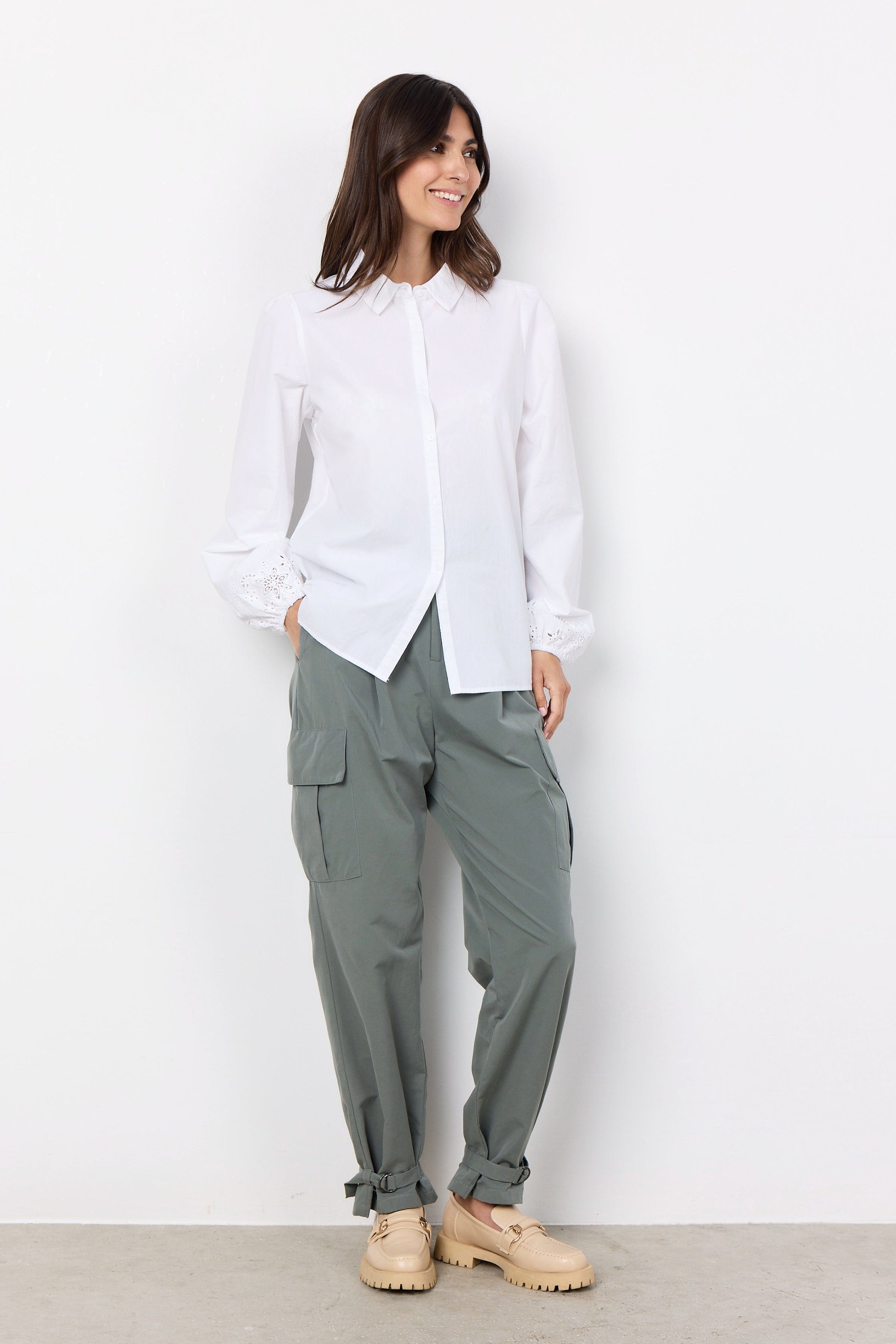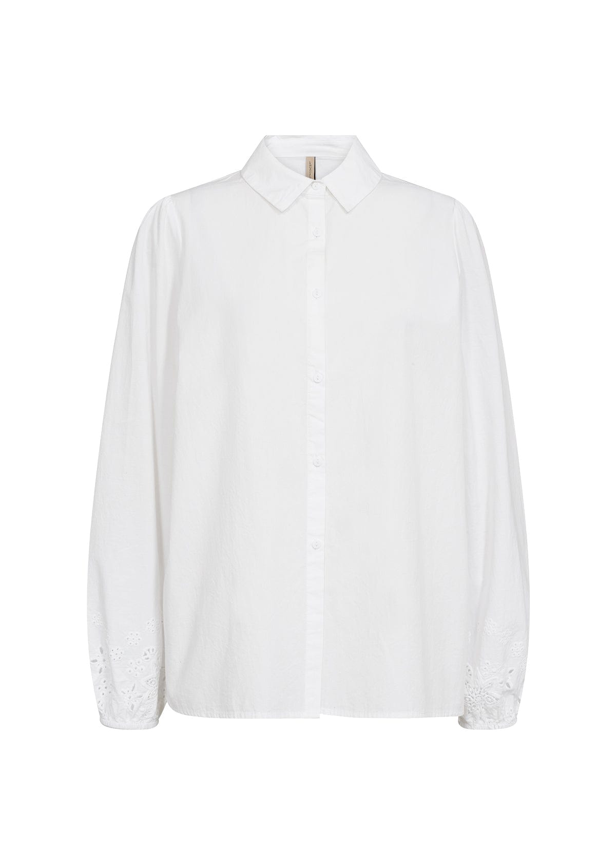 Soyaconcept broderie puffed cuff shirt has a classic collar, a button closure, long balloon sleeves and a loose fit. Style this lovely shirt with some loose fit jeans and a blazer for a casual yet sophisticated look.
