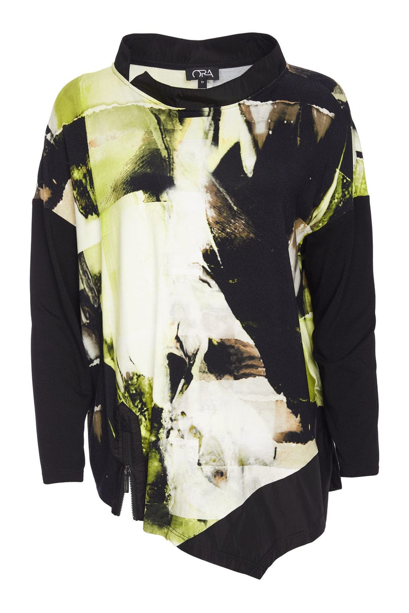 ORA Lime Print Asymmetrical Top