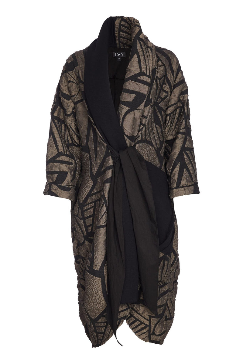 ORA Tie Front Print Coat