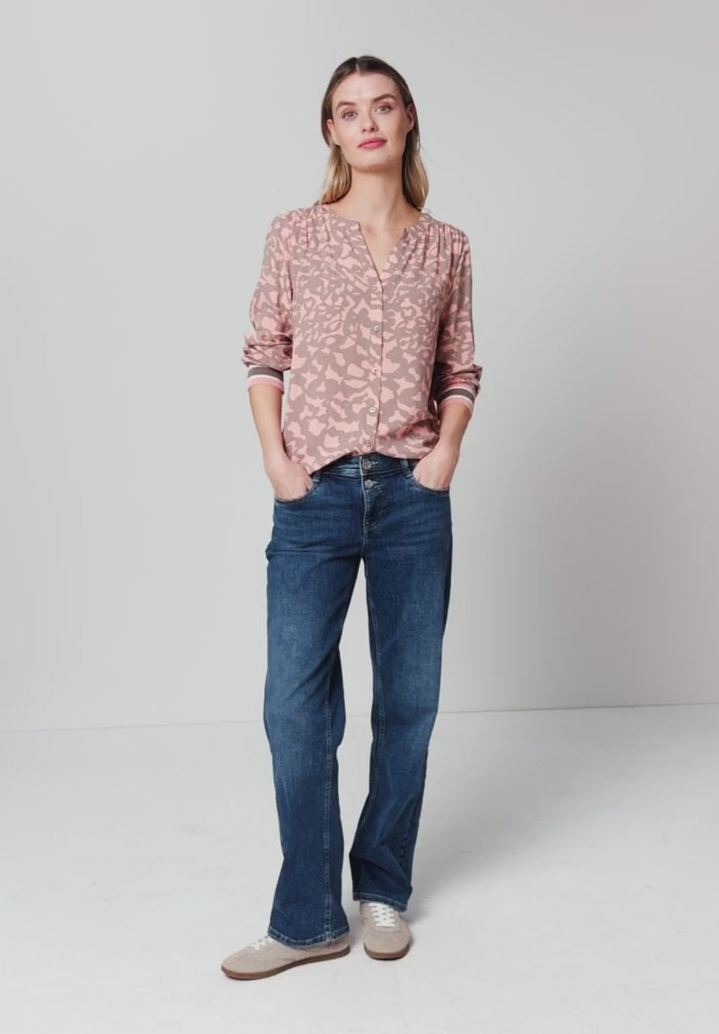This patterned blouse from Street One for women attracts everyone's attention with its graphic pattern. The split neck and striped details on the cuffs give it a modern look. The airy viscose quality makes it the perfect companion for stylish and comfortable looks.
