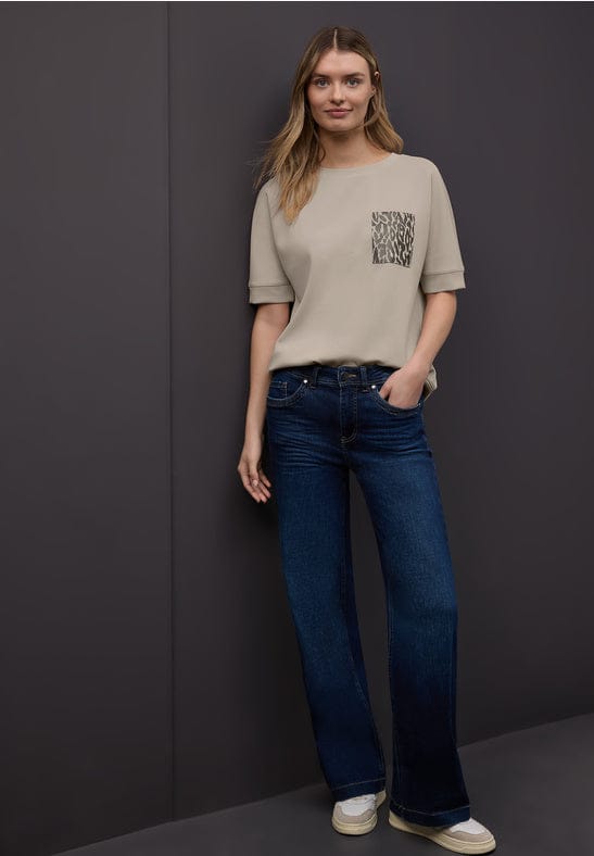With a silky sheen and trendy leopard chest pocket, this women's Street One t-shirt brings a stylish upgrade to your basics. The soft modal mix with stretch ensures a smooth feel. Perfect with jeans or a skirt, for outfits with a touch of extravagance.