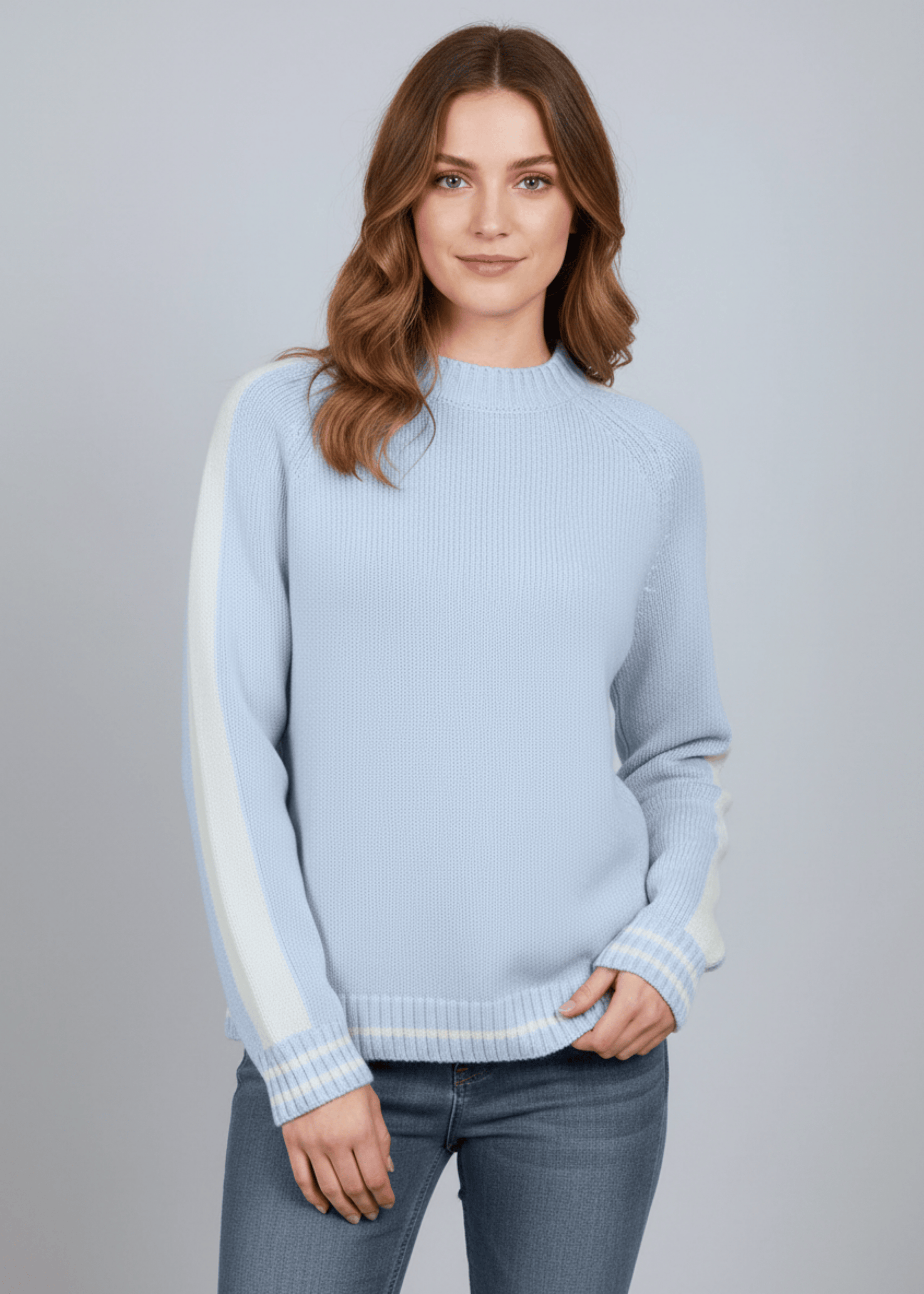 Refresh your wardrobe with this charming knit, where soft blush rose and baby blue stripes create an effortlessly spring-ready look. The delicate colour combination captures that perfect seasonal transition moment, making it an instant favourite for layering or wearing solo. Playful yet polished, this knit top brings a touch of understated elegance to your everyday rotation.