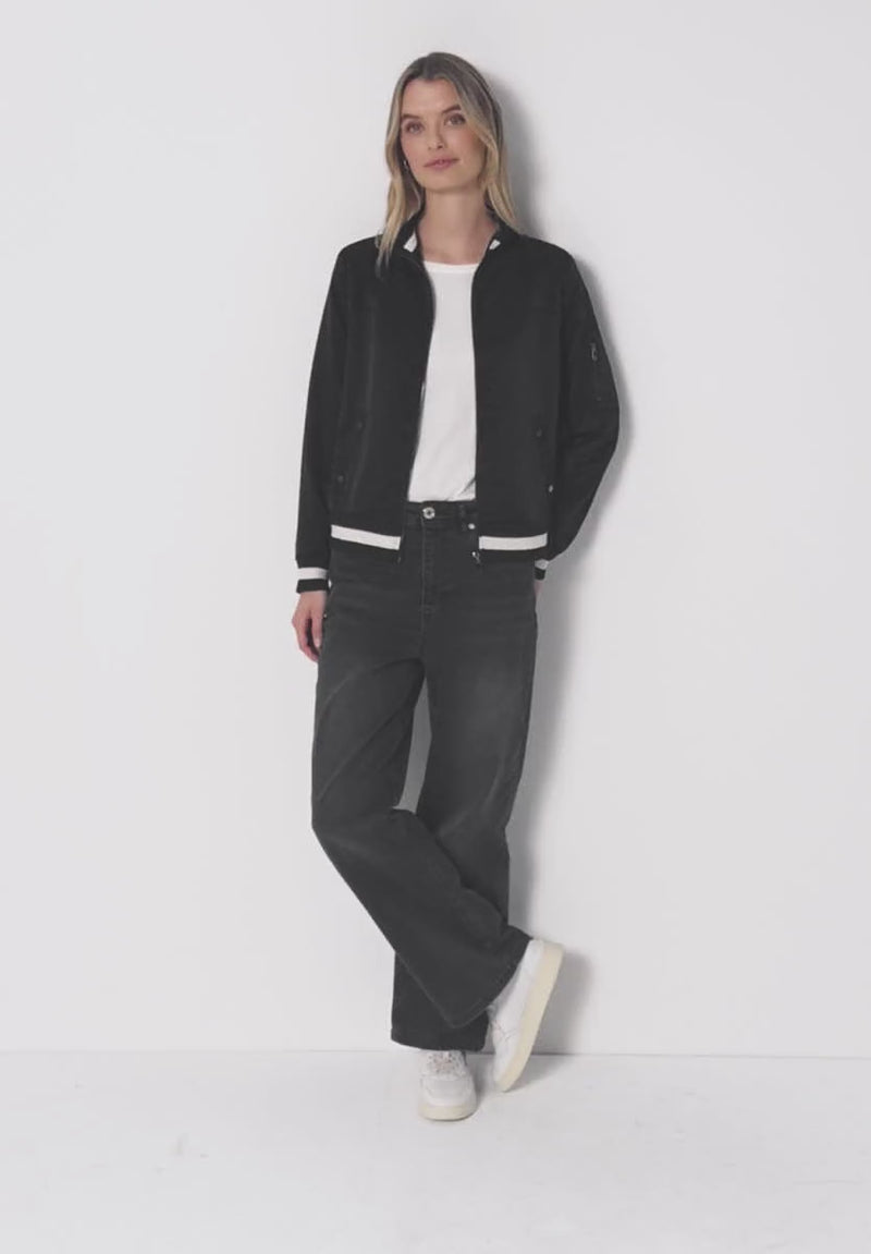This women's satin jacket from Street One makes a fashion statement with its silky sheen and sporty college details. Zipper details on the sleeve and side pockets give the satin jacket a casual twist. Perfect for trend-conscious looks with a feminine touch.