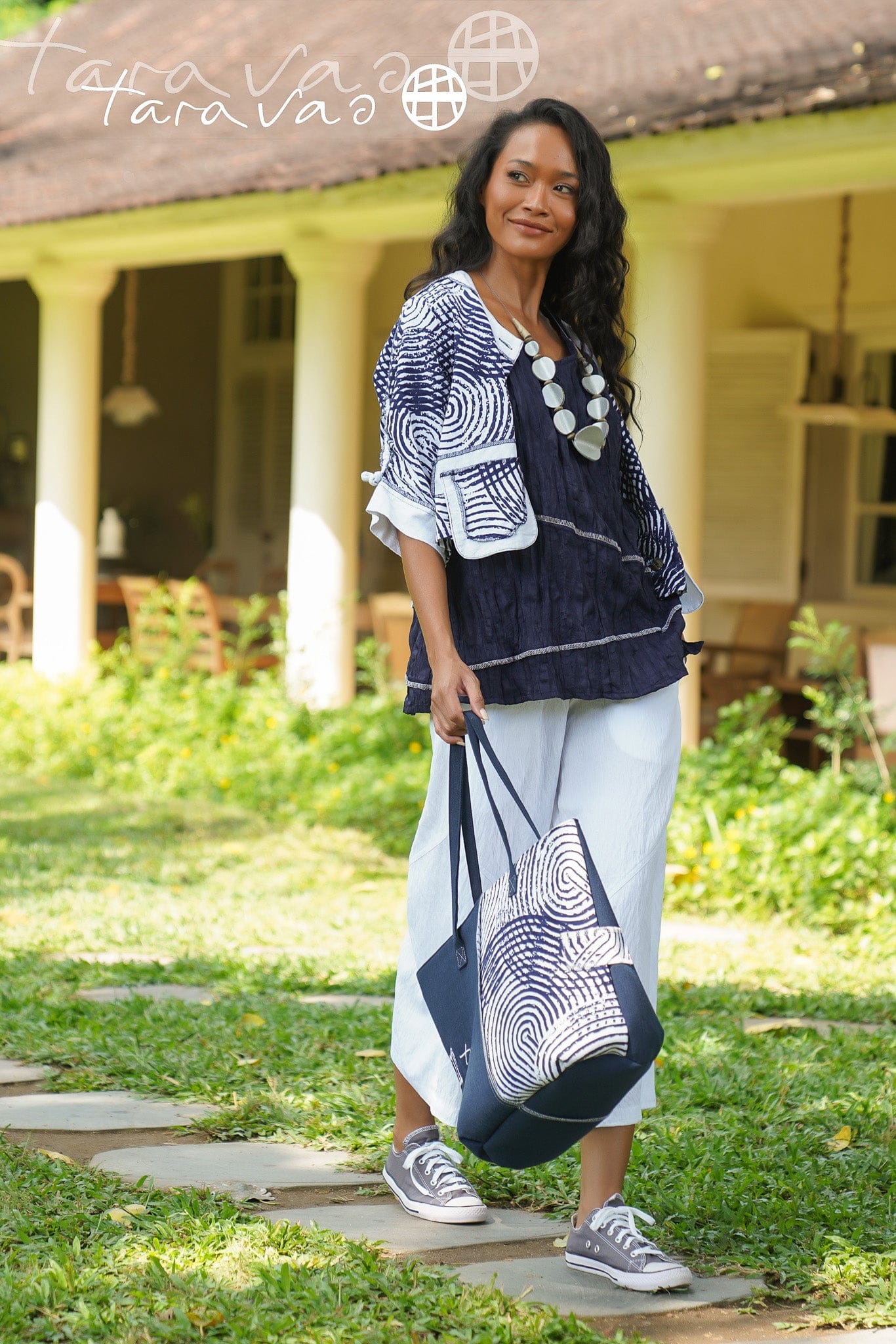The Tara Vao concentric circle jacket features button up detailing, as well as pockets. Its summer print speaks for itself.