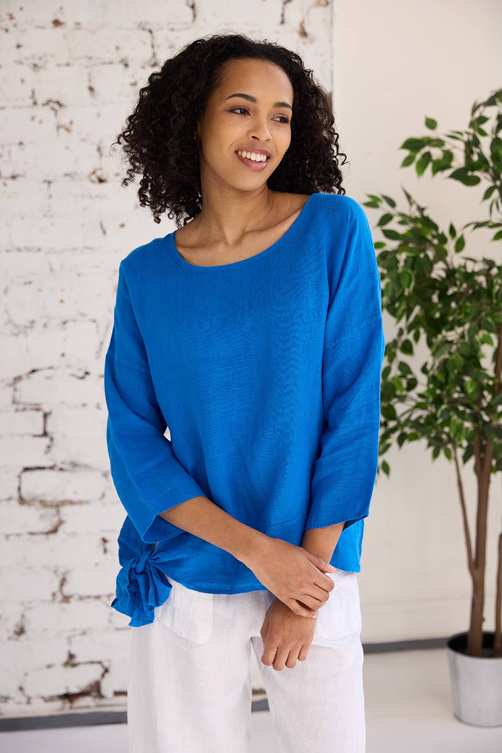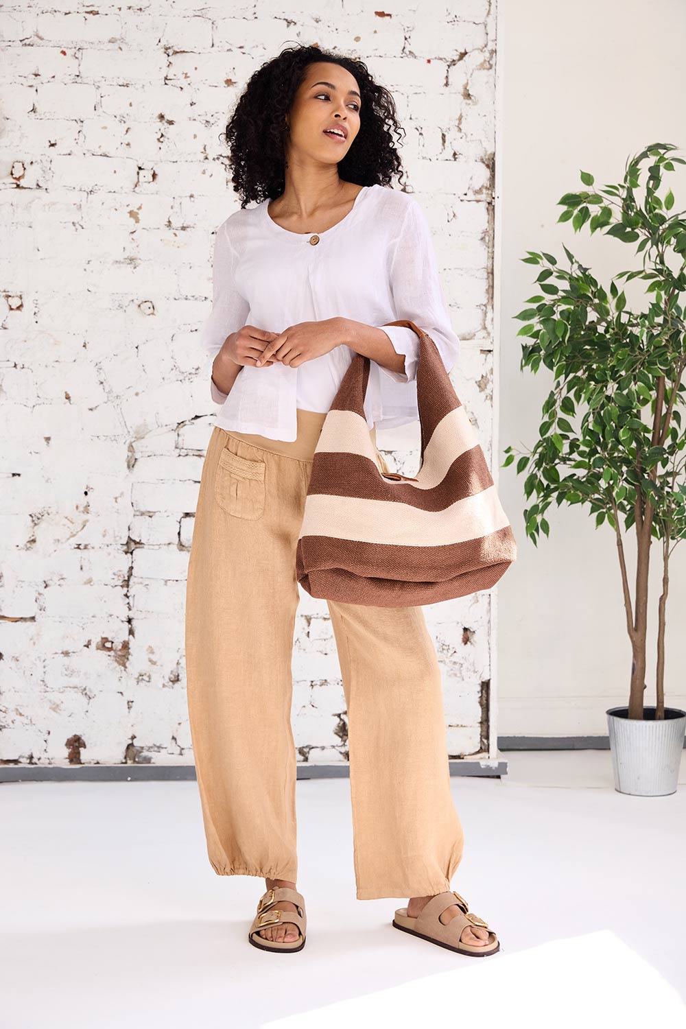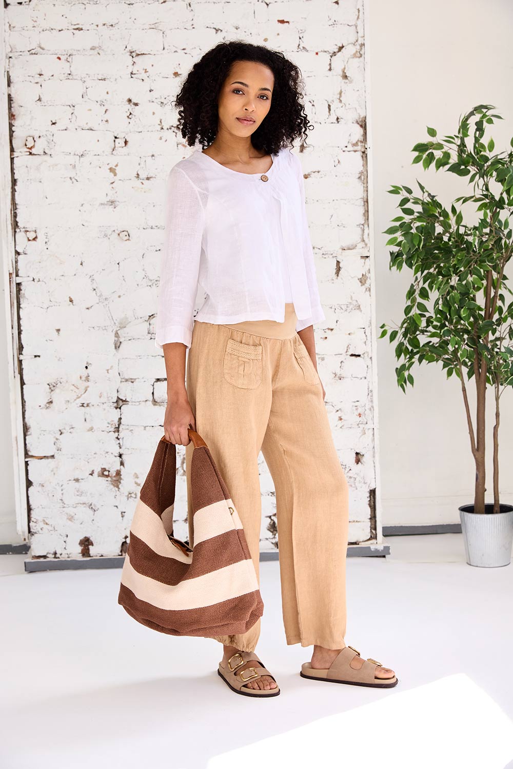 The ART ruched eng trouser features two-pocket detailing on the trouser front, a comfortable and elasticated waistband, long straight leg fit that is ruched at the bottom. These bottoms are the perfect linen trouser for the summer months ahead.