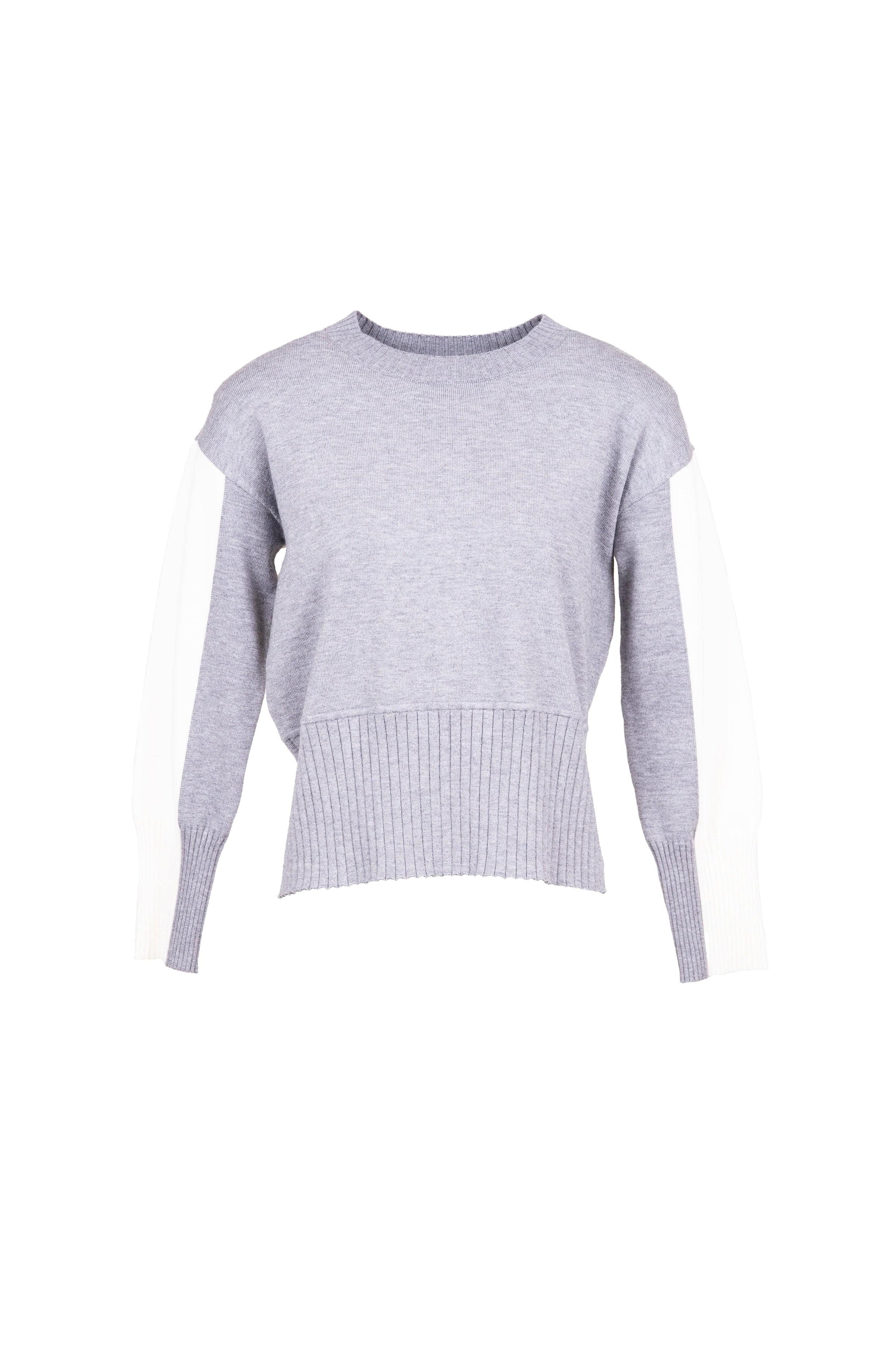 PERUZZI two tone rib knit features a crew neckline with a ribbed finish. Designed with wide ribbed hem and cuffs, it gives both structure and texture to knit. Its full-length sleeves has contrast detailing and straight, relaxed fit ensures comfort.