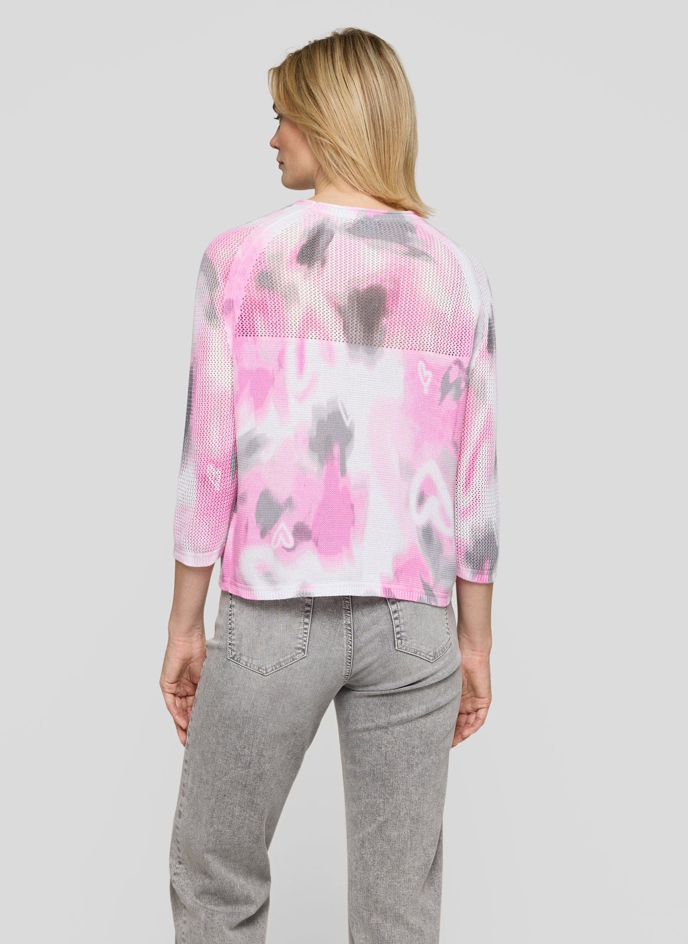 The RABE graffiti knit features a delicate design of blush pink and grey throughout with script and graffiti detailing. With a flattering round neckline and quarter length sleeves, its the perfect piece to pair with leggings or shorts for the warmer seasons ahead.