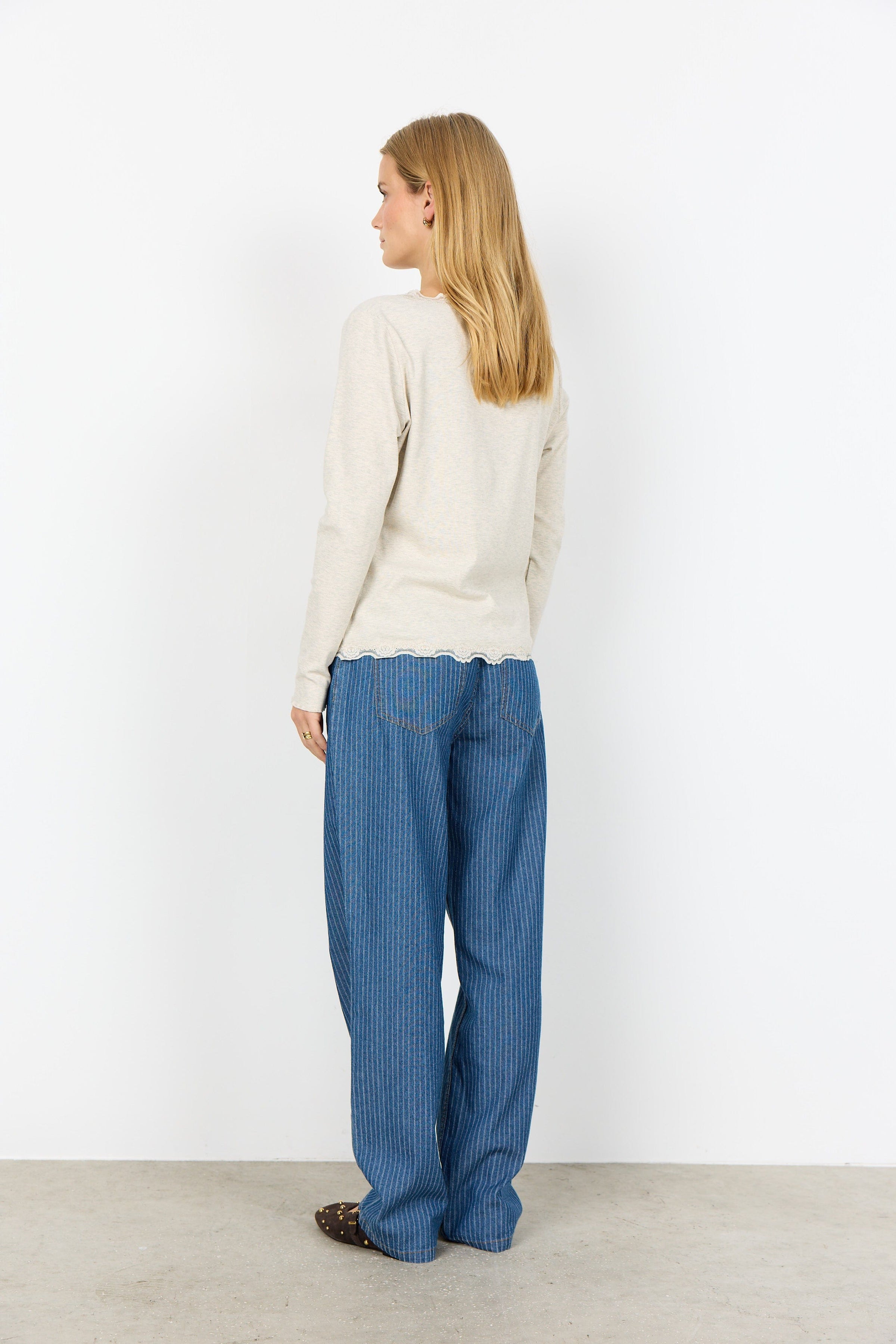 The Soyaconcept button cardigan features a delicate lace trim along the V-neck and button front, with a scalloped hem adding an elegant touch. Pair it with tailored trousers or throw it over a dress for an effortlessly cool look.