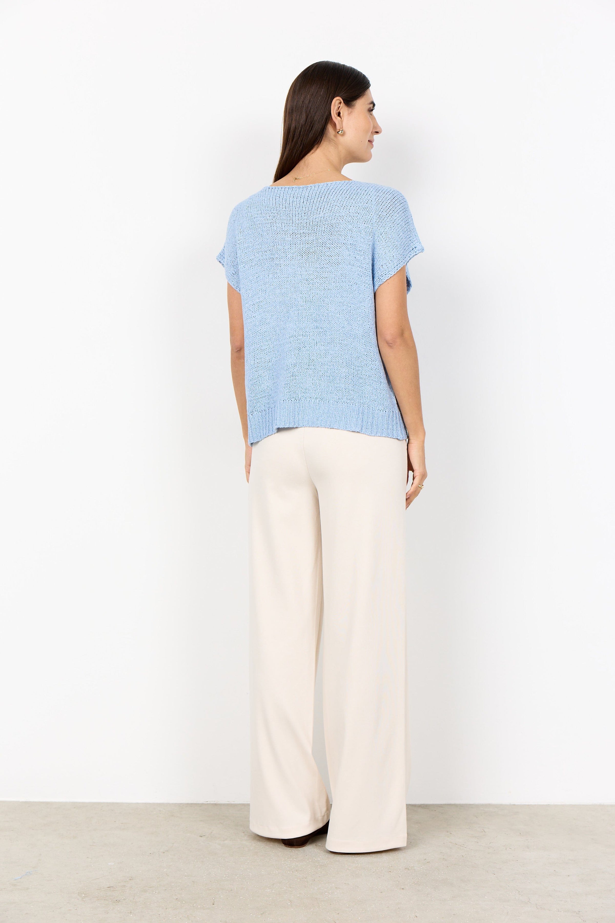 The Soyaconcept crochet knit features a textured knit with a round neckline and short sleeves, detailed with a delicate open-knit pattern. Pair this elegant T-shirt with tailored trousers for a stylish look.