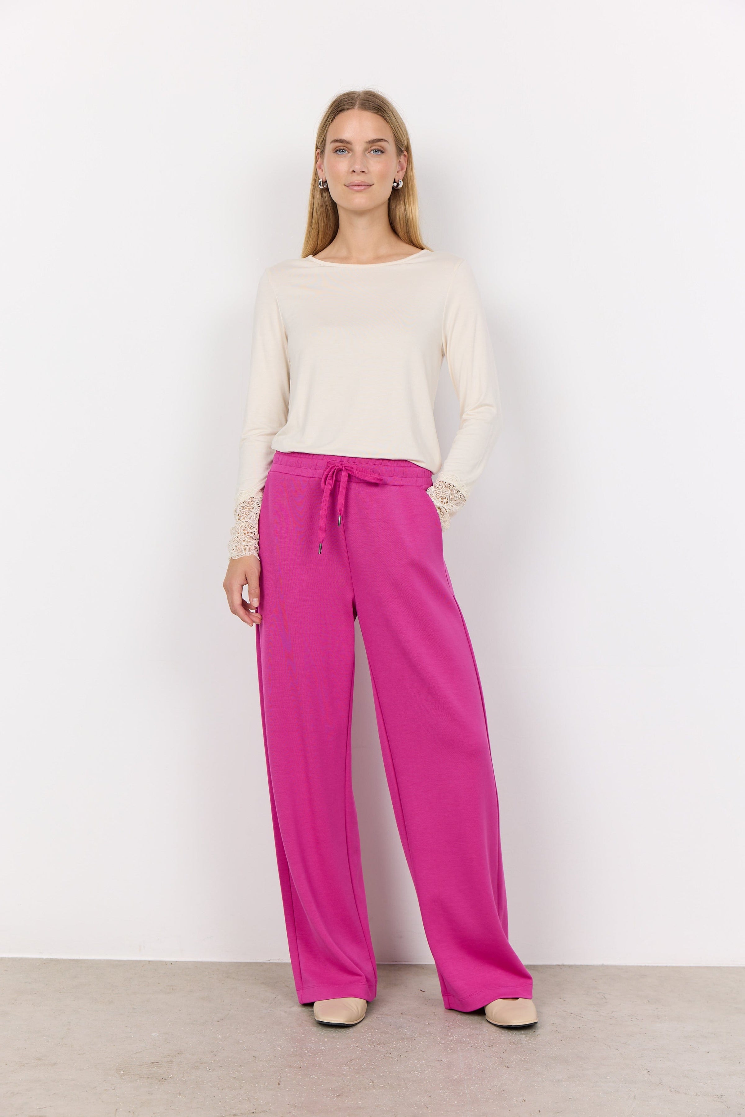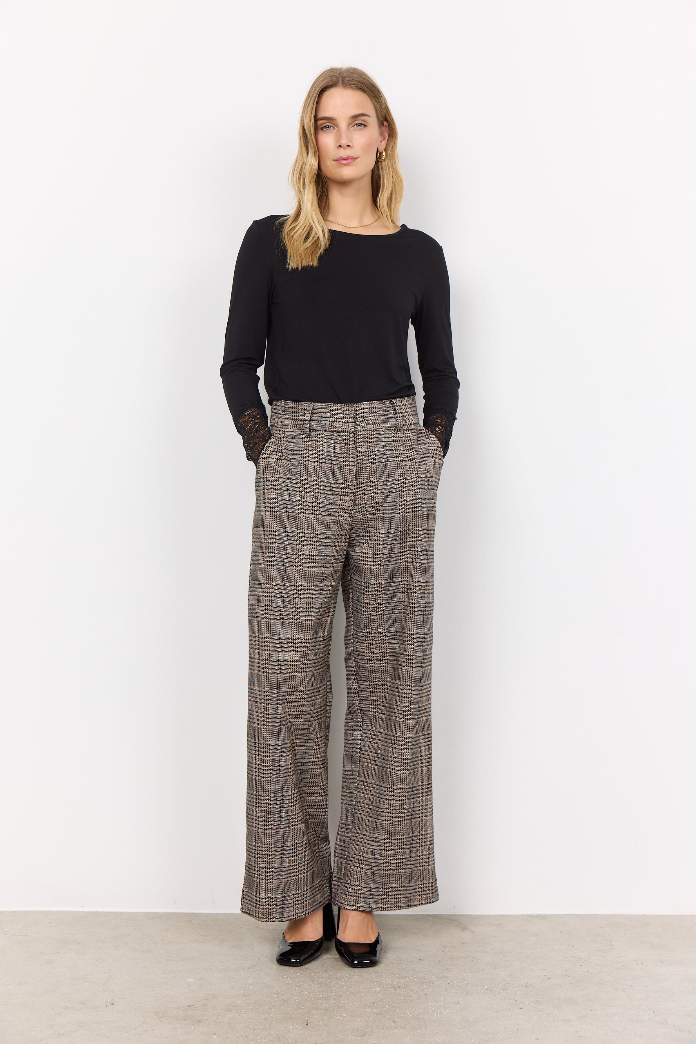 The Soyaconcept lace cuff top transforms a simple design with its round neckline, deep cuffs, and intricate lace accents. It’s a stylish upgrade to the everyday essentials every wardrobe needs.