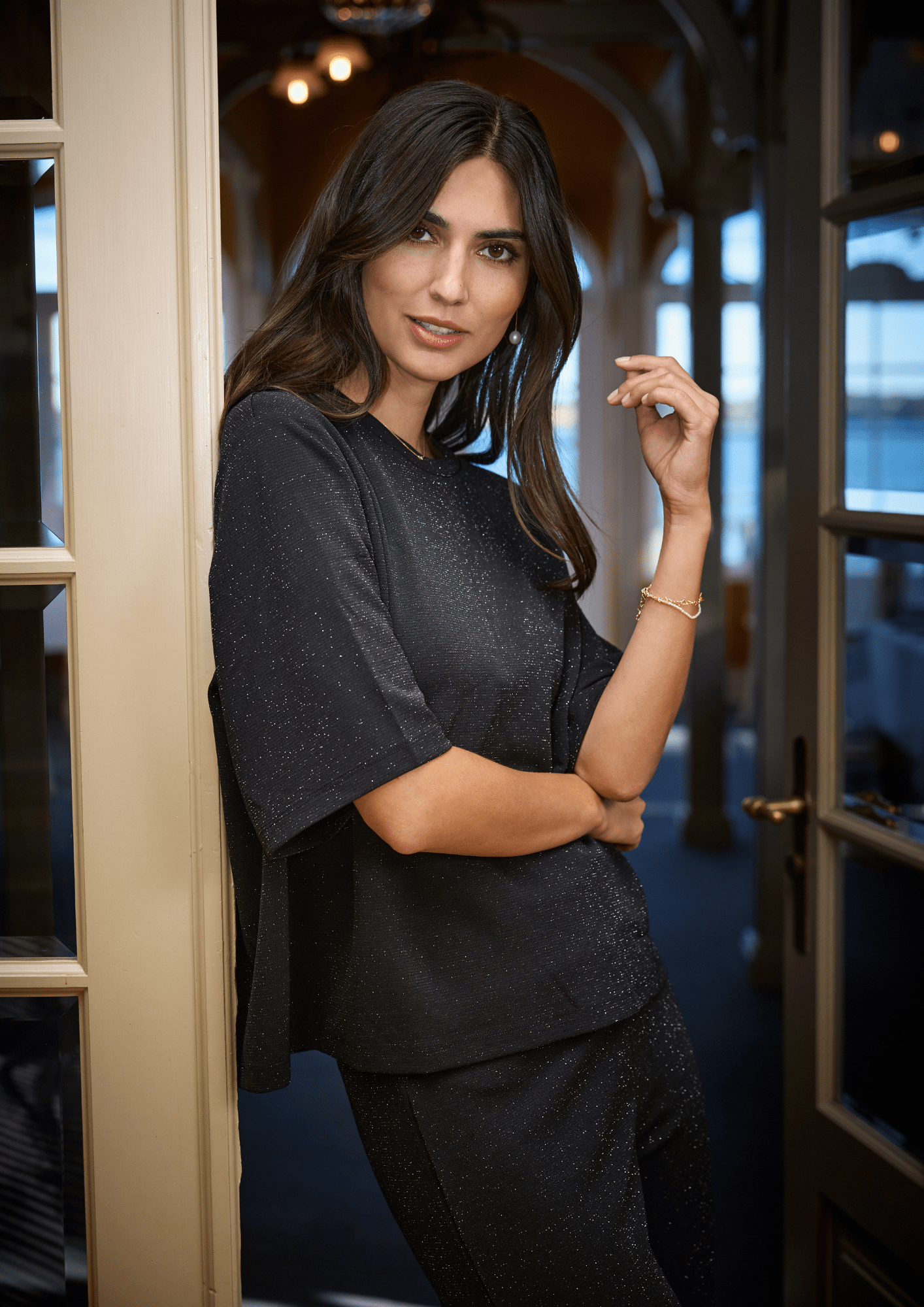 This Soyaconcept t-shirt makes a refined statement with its classic round neckline and delicate rhinestone embellishments spread across the fabric.