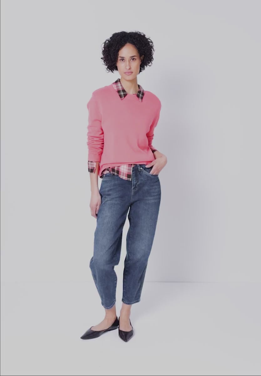 The Street One balloon leg jeans impress with their loose fit, high waist, and modern barrel silhouette. The blue wash and classic 5-pocket style make them a casual everyday staple. The slightly curved side seam gives the jeans their signature barrel shape, offering plenty of freedom of movement at the hips and thighs while still providing a structured look. The stretch in the cotton blend ensures a comfortable feel, both comfortable and stylish.
