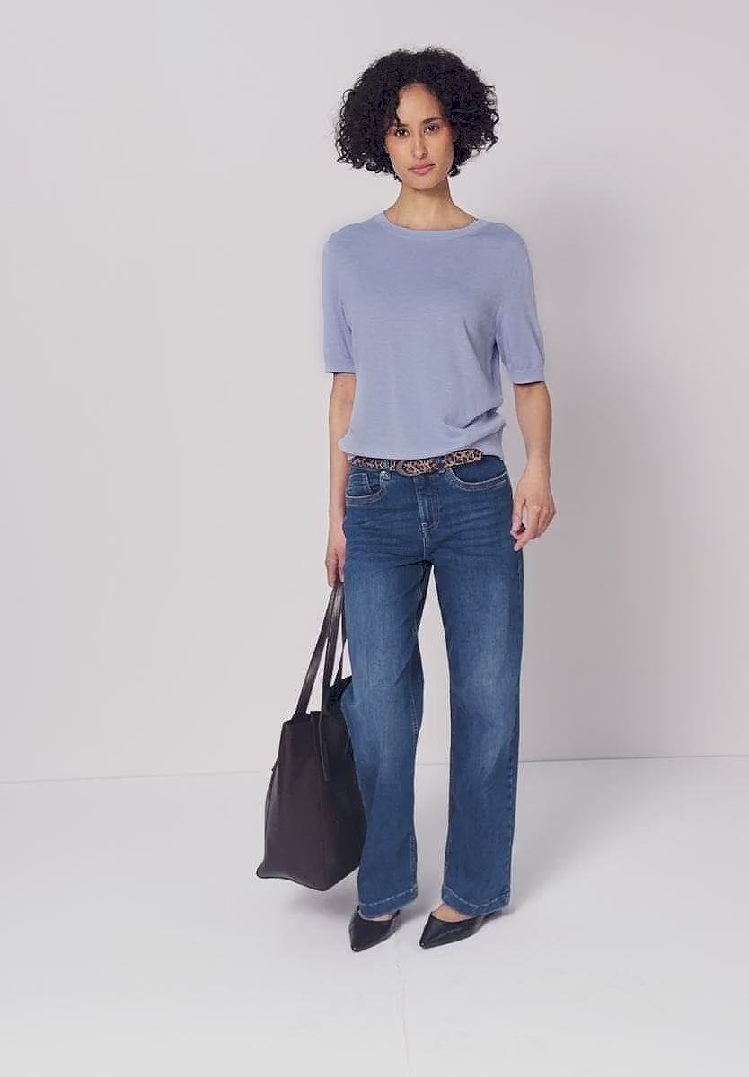 The Ste=reet One knit top is a casual knitted sweater with a flattering round neck, a short half sleeve, and a relaxed fit, its the perfect knit for those colder summer days.