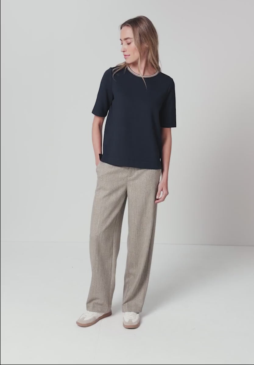 This women's T-shirt from Street One brings understated sophistication to your look with its contrasting detail at the round neckline. The soft viscose blend with added stretch ensures a comfortable feel and a great fit. Short-sleeved and comfortable, ideal for versatile casual outfits.