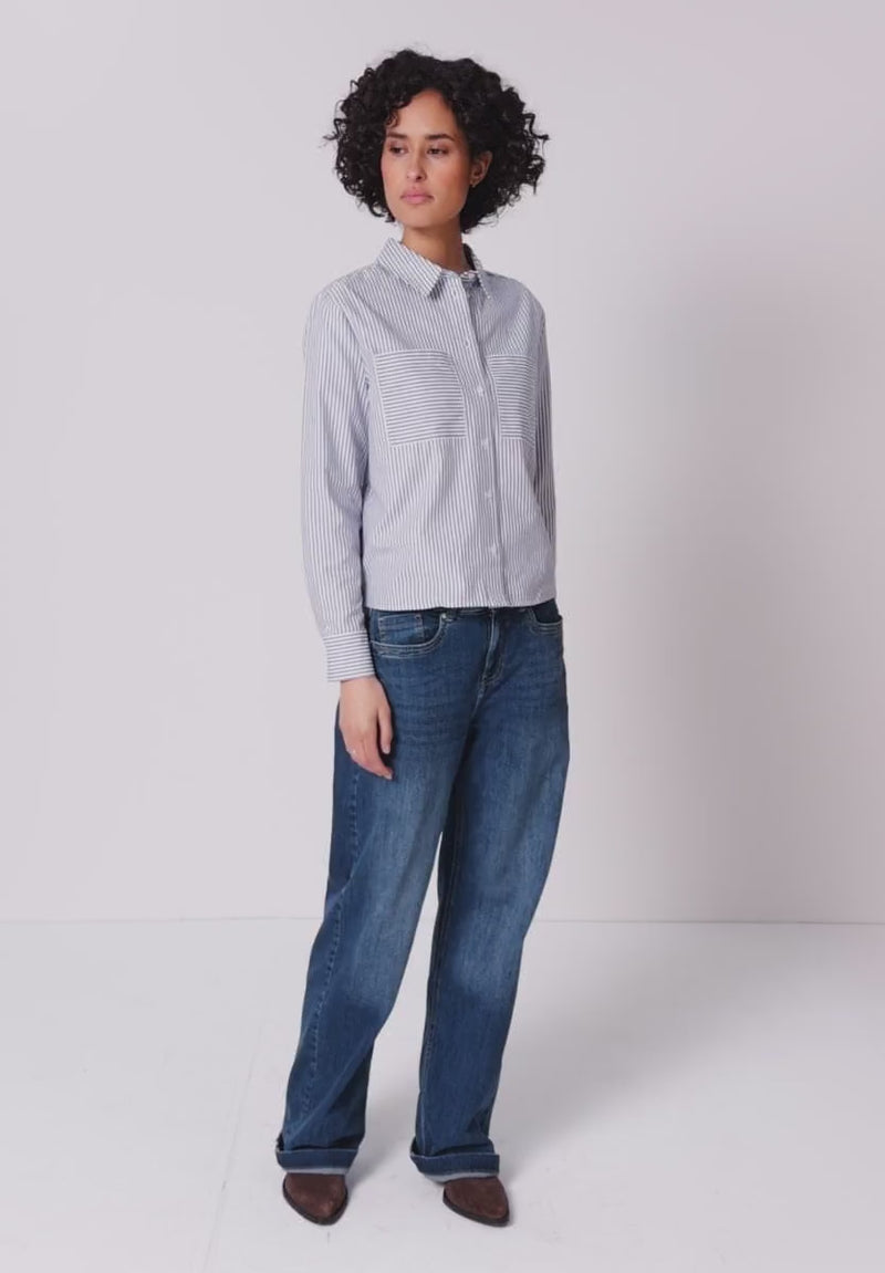 This striped women's shirt blouse from Street One features a shirt collar, chest pockets, and a classic button placket. Made from pure cotton, it offers exceptional comfort – ideal for long days at the office. A slightly rounded hem completes the clean look.