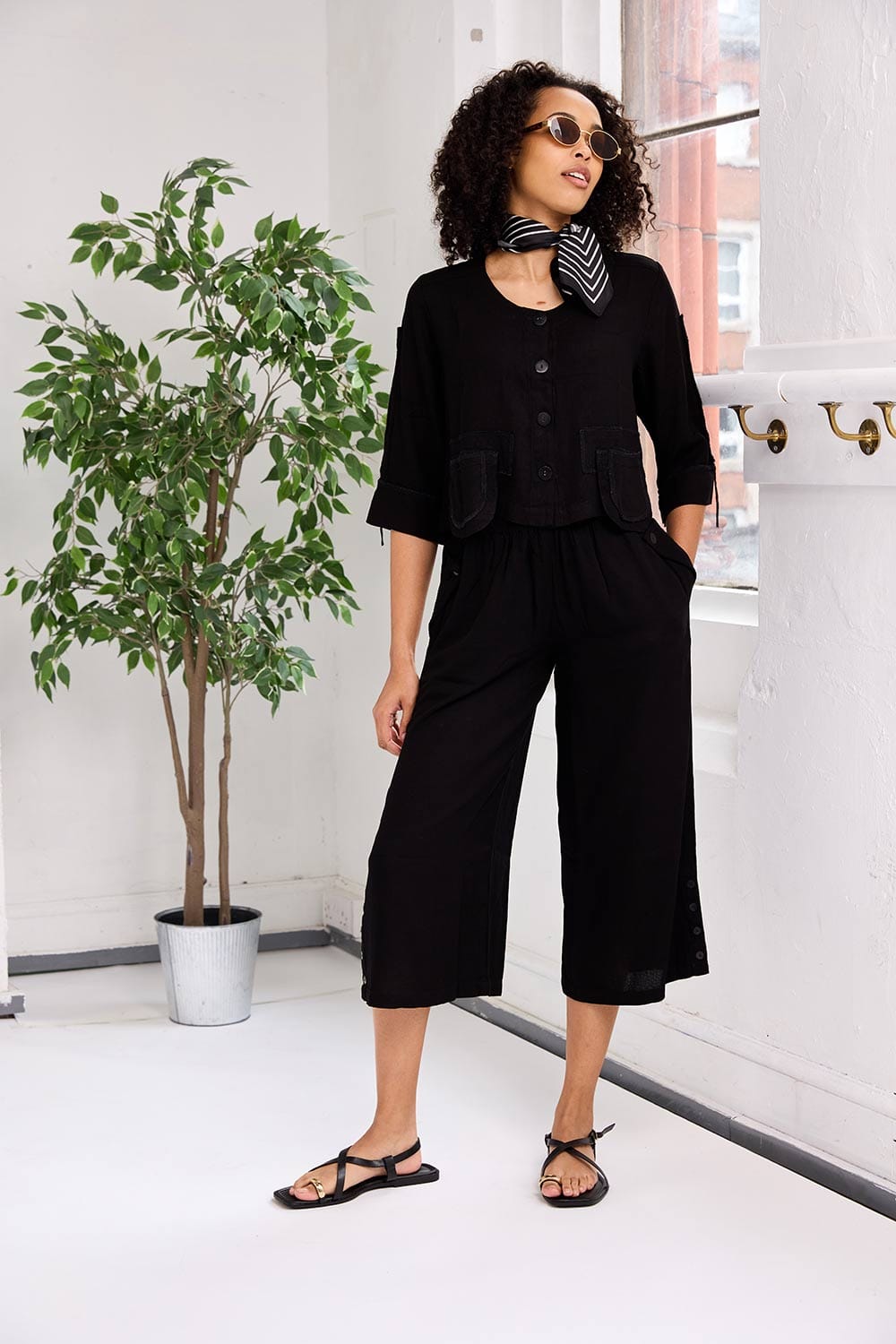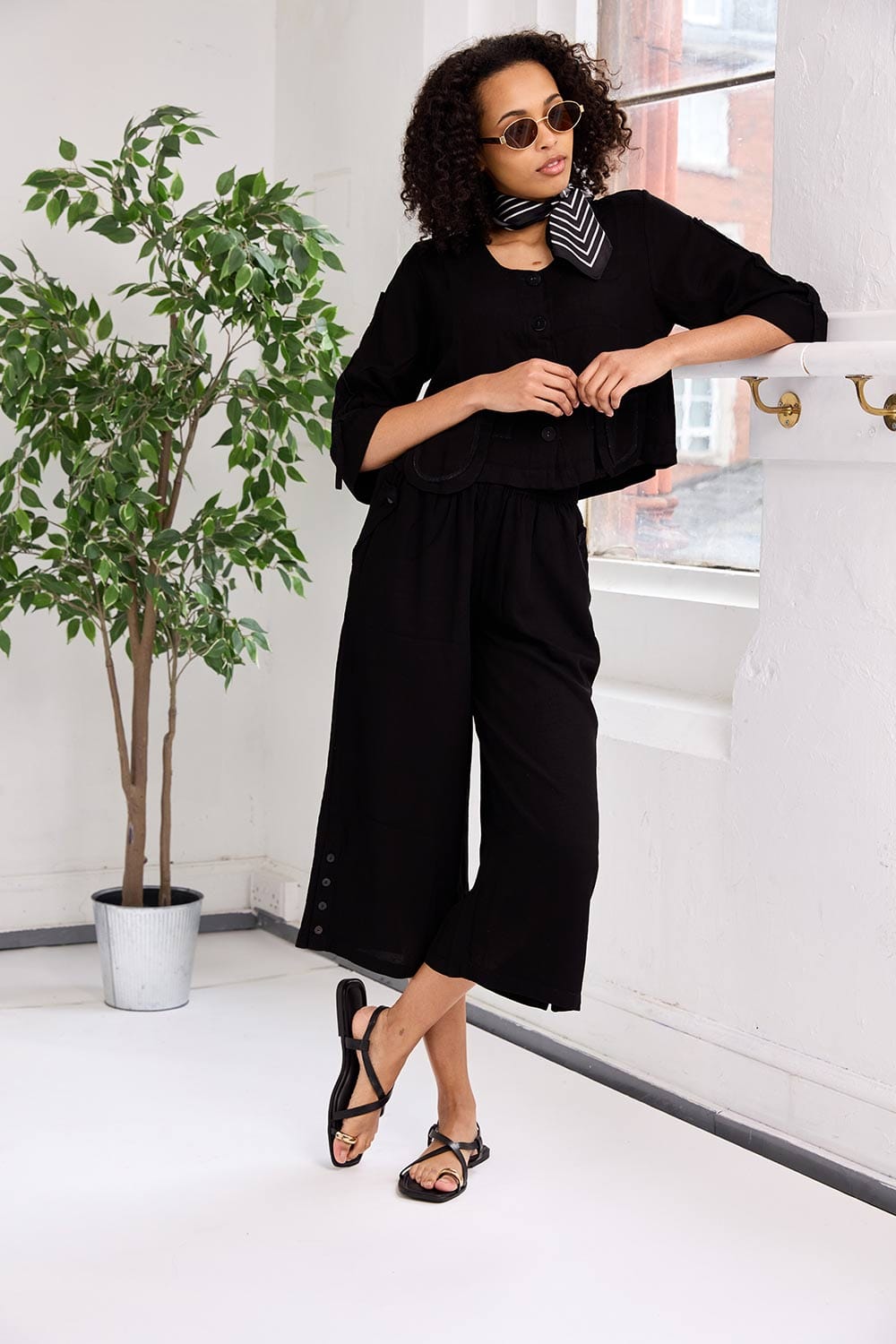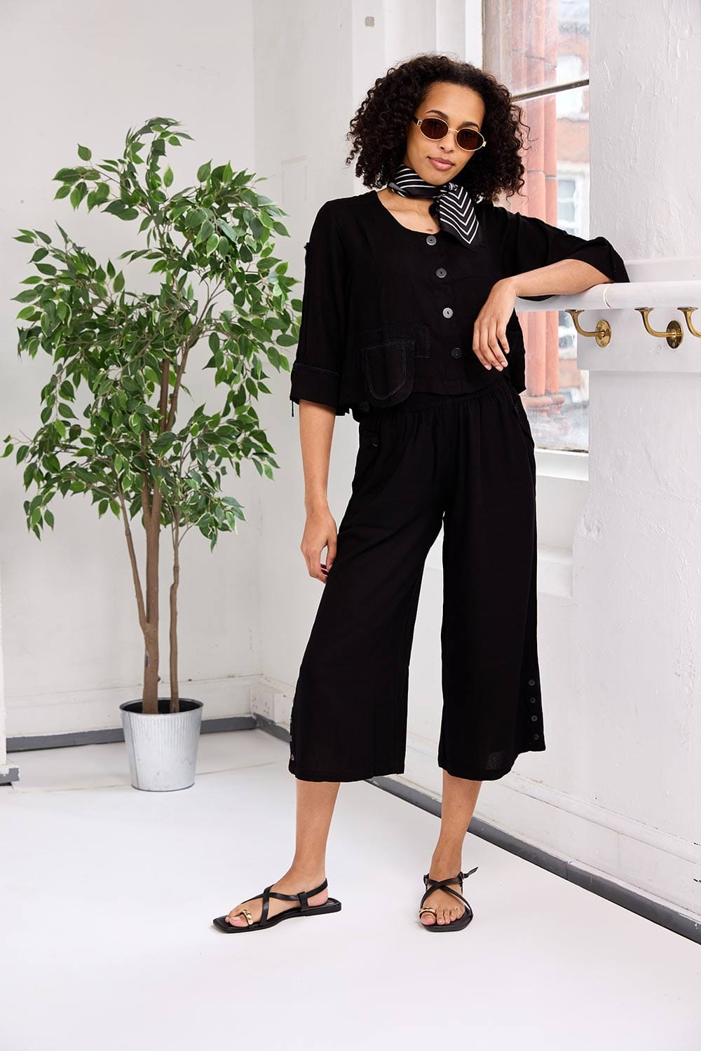 The Tara Vao curved trouser features a flattering cuff, elasticated waist and an airy silhouette.